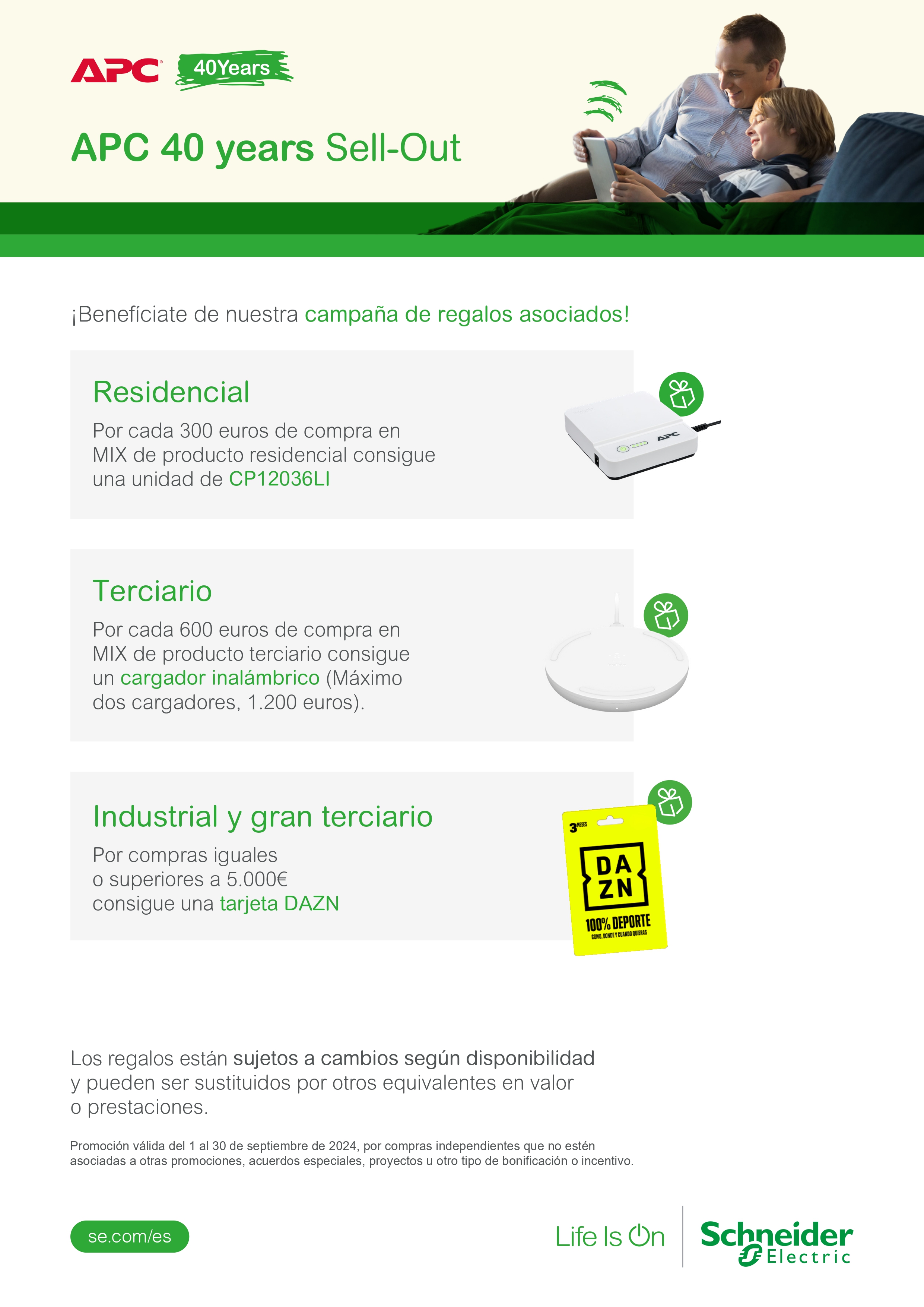 Importes netos, sin impuestos. Unidades de regalos limitadas, promoción válida hasta agotar existencias. Los regalos están sujetos a cambios según disponibilidad y pueden ser sustituidos por otros equivalentes en valor o prestaciones. Excluidas operaciones y precios de obra. Promoción válida del 1 al 30 de septiembre de 2024, por compras independientes que no estén asociadas a otras promociones, acuerdos especiales, proyectos u otro tipo de bonificación o incentivo. Grupo Muntaner Electro se reserva el derecho de modificar los regalos por otros de valor similar según disponibilidad y a cancelar la promoción al terminarse las unidades de los regalos. Imágenes orientativas, no vinculantes.